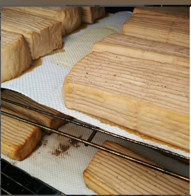 もうひとつの名物が、手作りの「いぶり豆腐」です。白山豆腐を3日間特性醤油に漬け込んで燻製にしたこの料理は、義経も食べたかもしれないと言われる伝統の製法を守り続けています。郡上踊りせんべいも手作りで、料理に彩りを添えています。