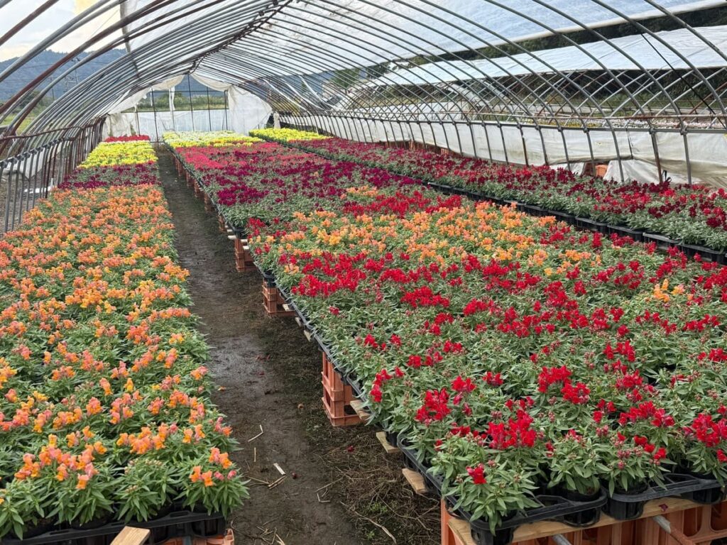 能代市では唯一の花卉農家である「周秀園」は、年間30種類もの花卉を手がけ、パンジーやビオラ、シルバーレースなどの苗もの・鉢ものを中心に、季節ごとに様々な花々が丁寧に育てられています。