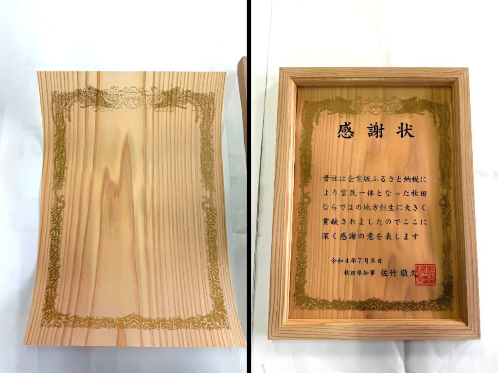 浜屋さんの技術の象徴が、独自開発した「杉の賞状」です。木の温もりと手刷りの風合いが合わさった唯一無二の仕上がりで、手渡された人が思わず飾りたくなる存在感があります。デジタル印刷では出せない“素材と対話する味わい”こそ、スクリーン印刷の魅力です。